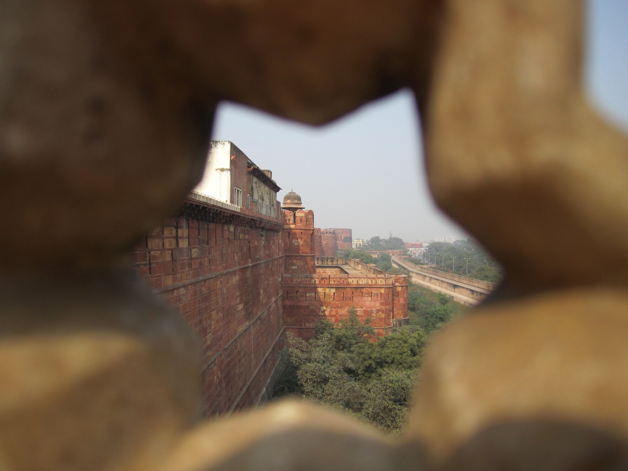 We arrived in Agra by a morning train from Jaipur. We dropped our bags in luggage storage at the station and headed for Agra Fort. This impressive building was home and prison to Shah Jahan, the husband to Mumtaz Mahal and the mind behind Mumtaz’s mausoleum the Taj Mahal. The Fort is very expansive and built of red sandstone and white marble. It’s impressive in it’s size and detailed decor.