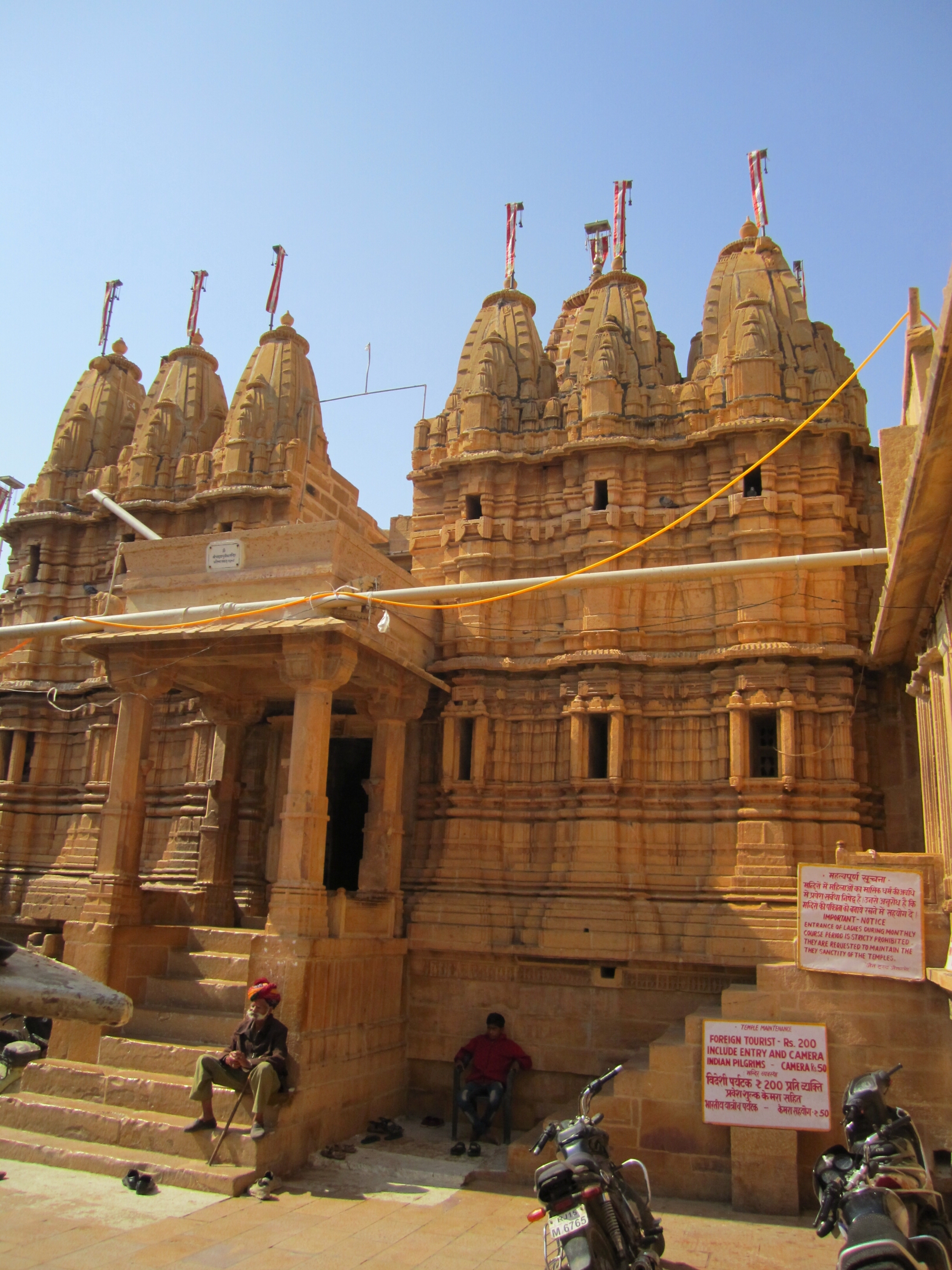 We did also manage to see some of the town! Quieter and friendlier than Jaipur or Jodhpur there is a fascinating centre to Jaisalmer in the form of a living fort. Within the ancient walls, people still live, run shops and host guests. So much so that there is a major concern over the damage all the water may be doing to the foundations. Inside the fort is a palace museum not too disimilar to the one in Jodhpur, detailing the history of the ruling Maharawals and offering spectacular viuews across the town from the roof. The fort also houses the most intriguing collection of Jain temples – 7 in all, with more intricately carved stonework than you would imagine could fit in a small corner of a fort.