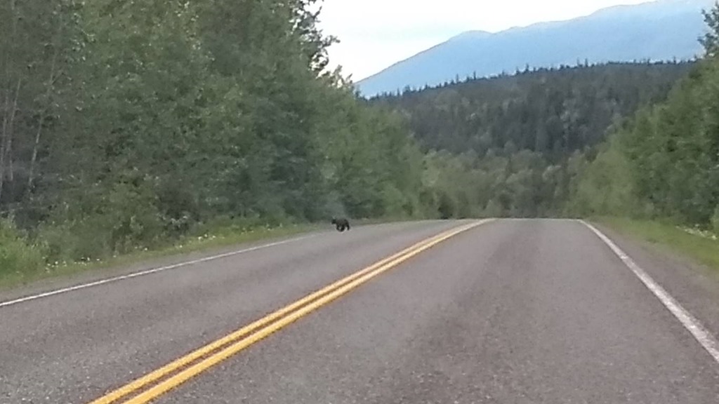 The drive between these sites turned out to be almost as exciting as seeing the huge poles. Between the two sets of poles we I caught our very first glimpse of a black bear, just hanging out by the side of the road. Less than an hour later I created a hill to see not just one bear, but a mother and cub crossing the road not 50 meters from us. About to set off again we were amazed to see another cub bound across the road, shortly followed by the third sibling. From never having seen a wild bear we managed five in one afternoon!